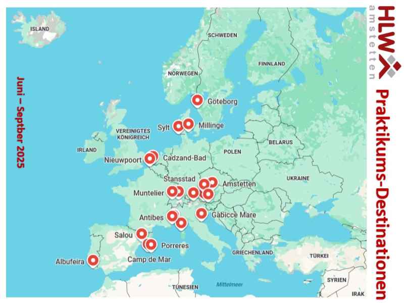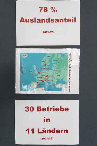 Um den Schüler*innen dabei unter die Arme greifen zu können, fand auch heuer wieder ein Vernetzungstreffen zwischen 3. und 4. Jahrgängen statt. Die 4. Jahrgänge berichteten über ihre Erfahrungen in den letzten Monaten, die sie in 30 Betrieben in 11 verschiedenen Ländern gemacht hatten. Neben Österreich waren die beliebtesten Länder Frankreich, Spanien, Belgien und Schweiz. Weitere Praktikumsdestinationen befanden sich in Deutschland, Niederlande, Schweden, Portugal, Dänemark und Italien.