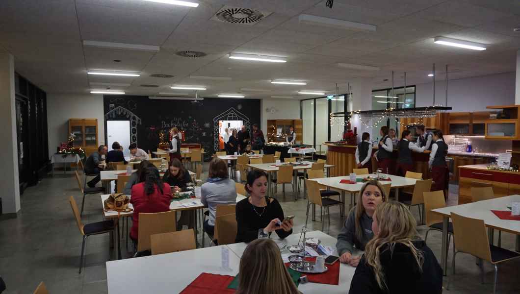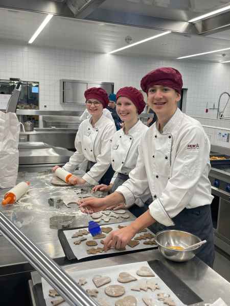 Für das kulinarische Wohl sorgte wie jedes Jahr der fachpraktische Bereich. Unsere Schüler*innen verwöhnten die Besucher mit pikanten und süßen Speisen, beeindruckten mit Showeinlagen wie dem Flambieren und luden zum kreativen Verzieren von Lebkuchen ein – ein besonderes Highlight für Groß und Klein. Abgerundet wurde das Programm durch ein spannendes Gewinnspiel sowie stimmungsvolle Auftritte der Schulband, die an beiden Tagen für musikalische Atmosphäre sorgte.