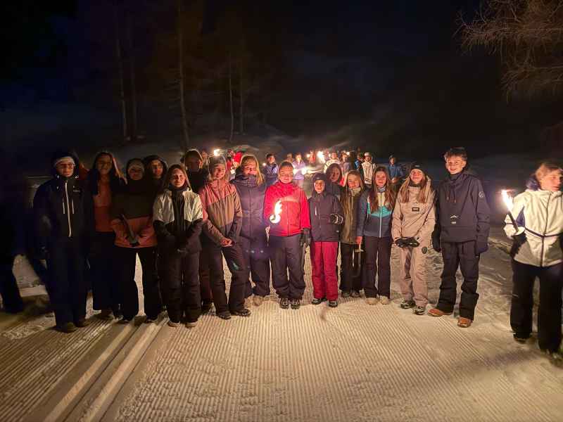 Neben dem Skifahren bzw. Snowboarden konnten die Schüler*innen auch den Langlaufsport ausprobieren. Abends gab es ein abwechslungsreiches Programm: Neben Gesellschafts- und Ballspielen war die Fackelwanderung bei klarem Sternenhimmel ein ganz besonderes Erlebnis.